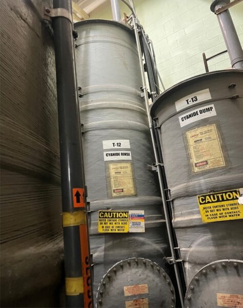 - Bottom left: Cyanide rinse dump tank